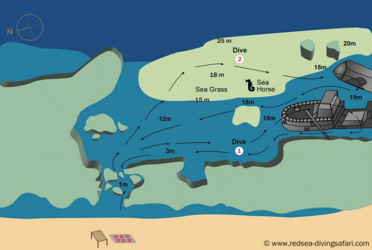 Marsa Shuni est une plongée qui vous mène le long du récif à une profondeur maximale de 25 m. Le site est riche en vie marine et merveilleux à explorer.