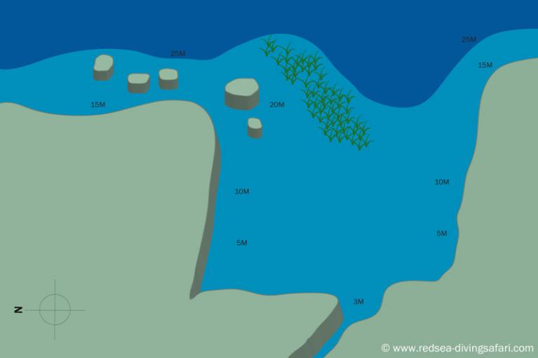 Le récif de Marsa Shagra est l'un des plus beaux du sud de la mer Rouge et présente deux cotés nord et sud qui forment une baie naturelle à fond de sable accessible directement depuis la plage. Il abrite des centaines d'espèces marines et une excellente variété de coraux mous et durs. La baie de Shagra est peu profonde, elle commence à une profondeur de 1 à 10 mètres et glisse en pente douce jusqu'a 40-50m avant de rejoindre les tombants extérieurs.